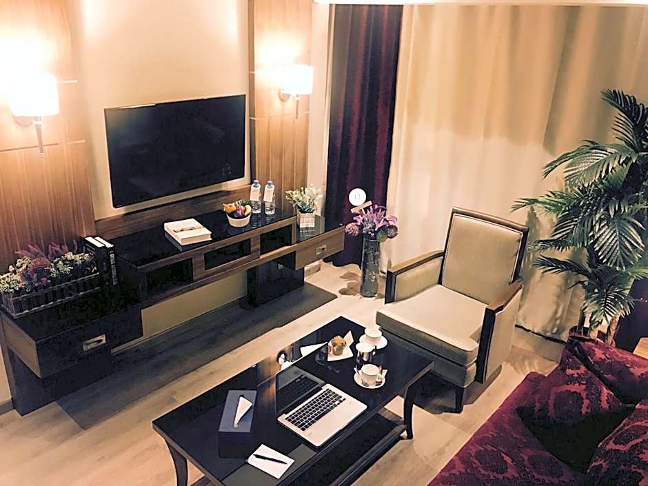 This spacious air conditioned twin room features a double bed, a seating area with a flat screen cable TV, a dining area and a mini bar. The bathroom offers a bath and shower, a bidet and complimentary toiletries.